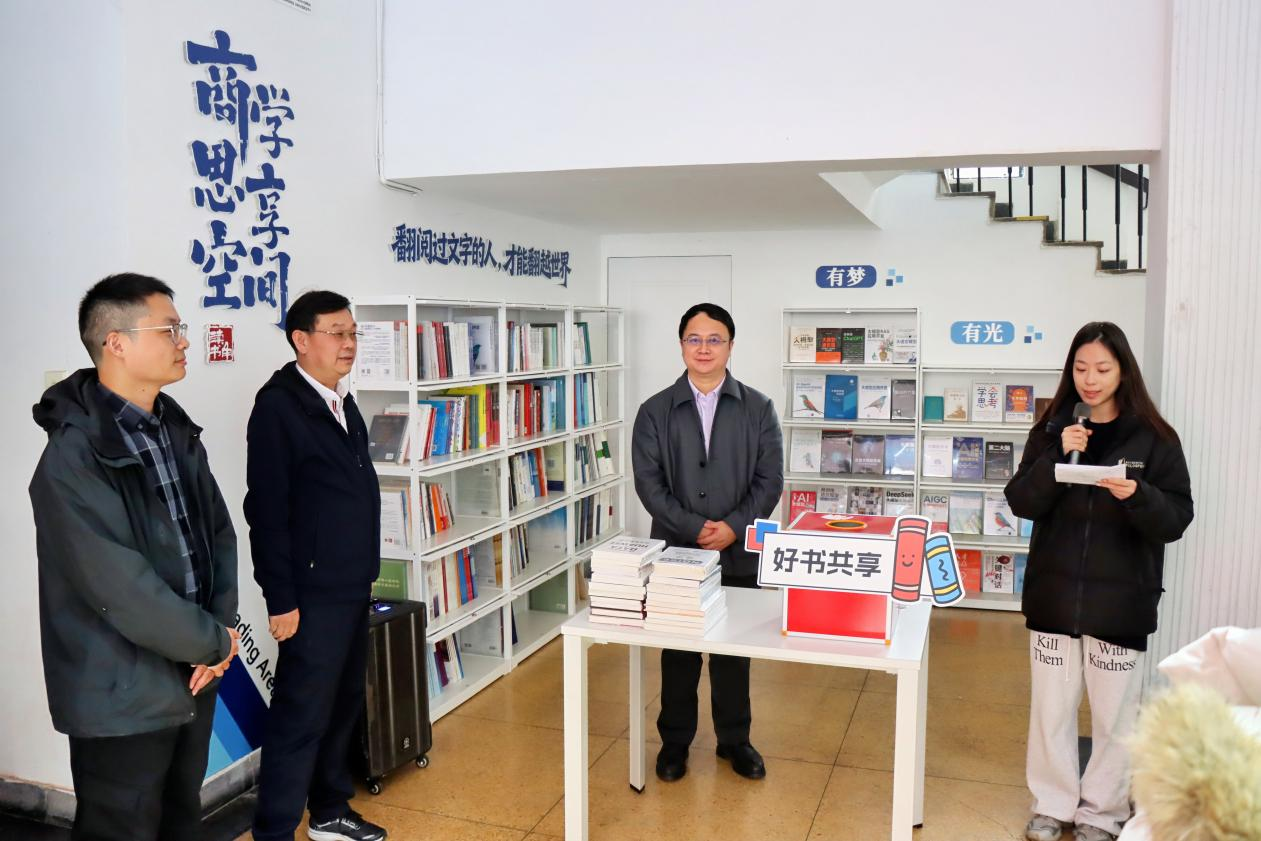 “商学思享空间”设置于教工路校区1号行政楼大厅,是学院精心打造的集经典阅读、思想交流、价值引领于一体的复合型文化育人平台。启动仪式上,陈衍泰副校长指出,“商学思享空间”不仅是阅读场所,更是思想交流与价值引领的育人平台。他鼓励师生多读经典、善学深思、交流互鉴、知行合一,将阅读转化为修身成才的内在动力。