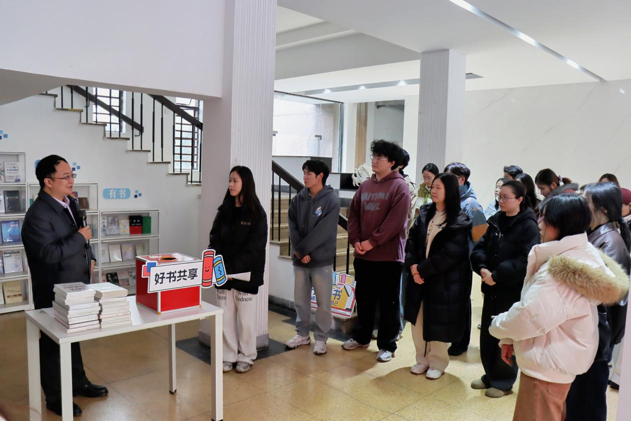 学院向学生代表赠送了首批精选图书,传递“以书育人”的理念。王节祥副院长结合“求真书会”实践经验,分享了深度阅读对涵养心性、拓展视野的重要作用,未来将持续推动阅读与成长深度融合。