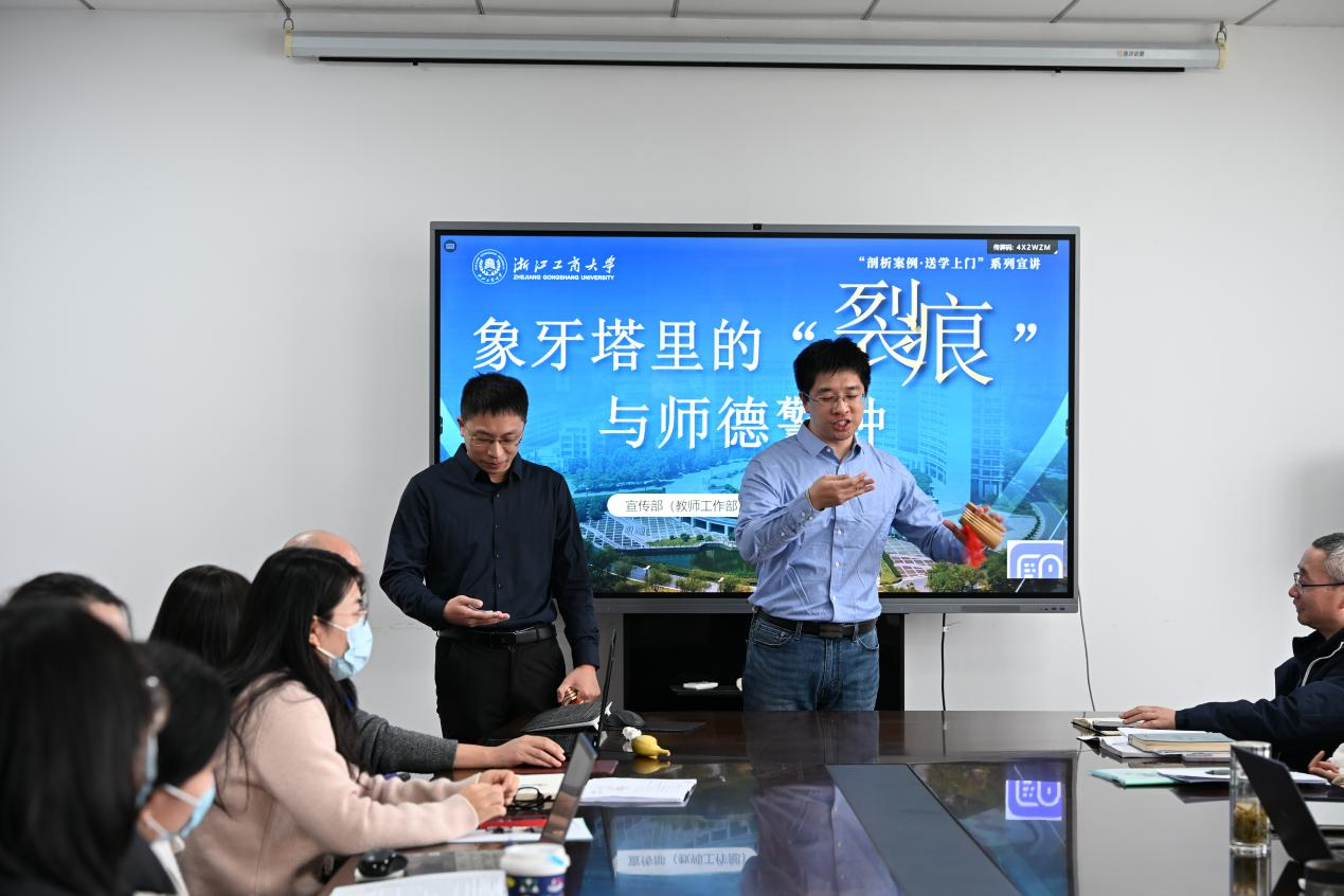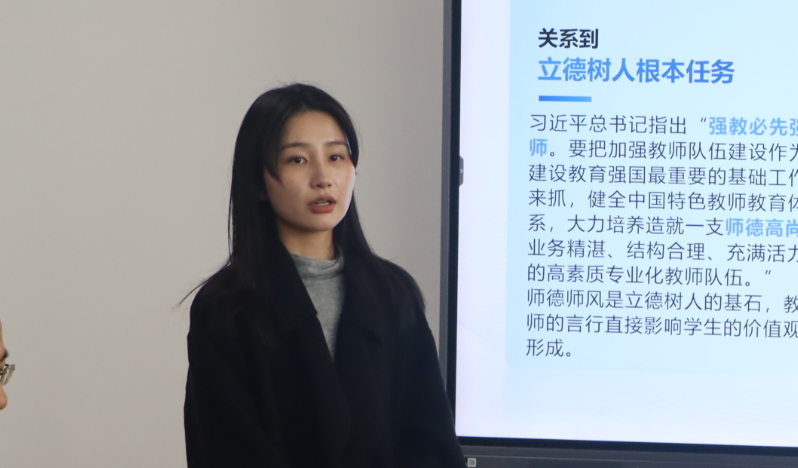 宣传部周婉钰老师详细介绍了师德师风建设的重要内涵,并结合教育部通报的违反教师职业行为十项准则典型案例进行分析,警示全体教师要以此为戒,坚决杜绝学术不端、师生不当关系等行为。